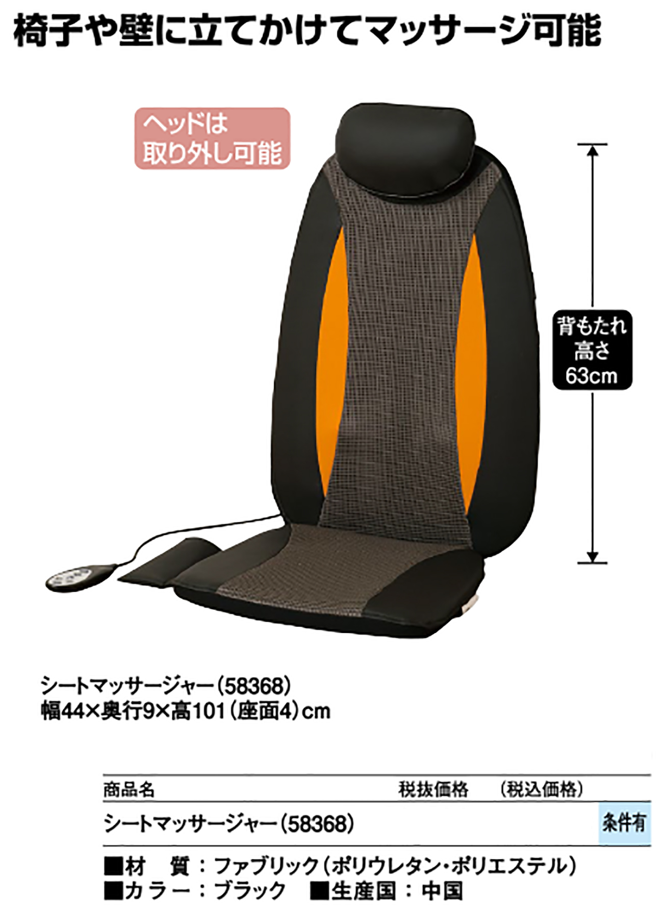 • シートマッサージャー(58368) 税抜15, 520円 (税込17, 072円)
