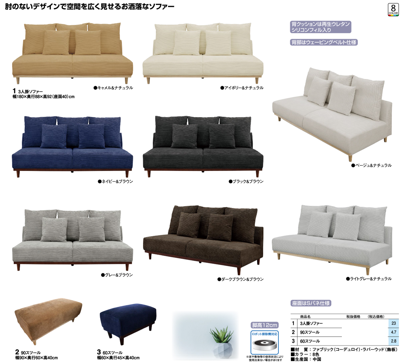 - 3人掛ソファー 税抜73, 600円 (税込80, 960円)