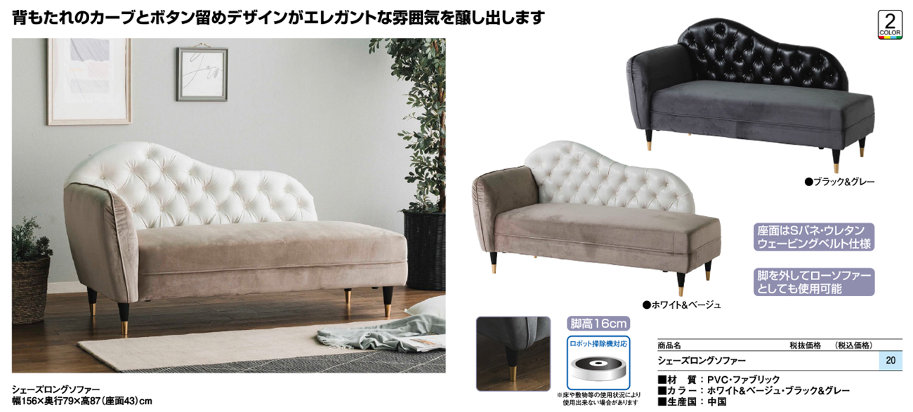 • シェーズロングソファー 税抜66, 720円 (税込73, 392円)