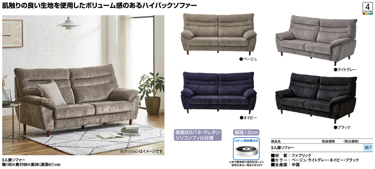 • 3人掛ソファー 税抜116, 000円 (税込127, 600円)