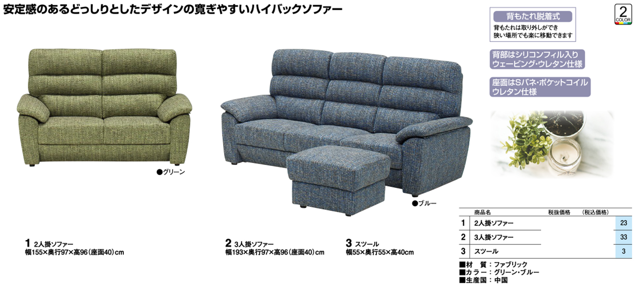 - 2人掛ソファー 税抜60, 000円 (税込66, 000円)