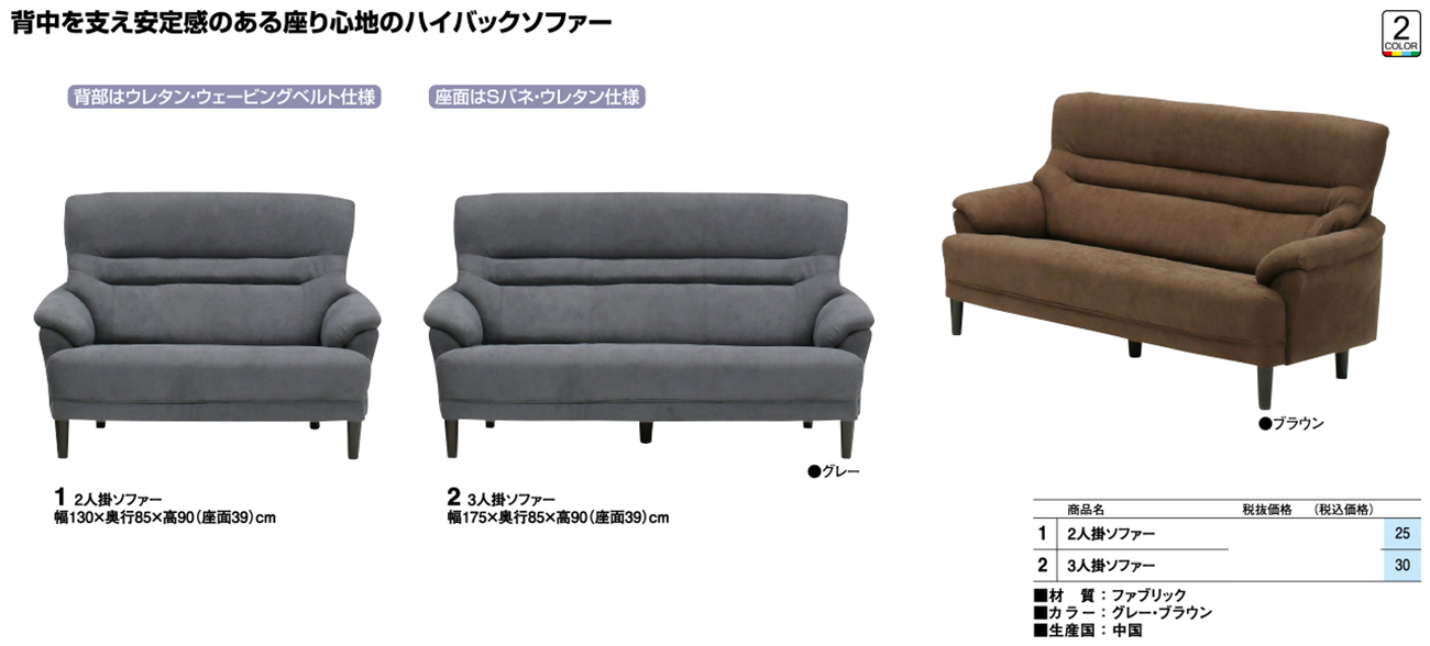 - 2人掛ソファー 税抜38, 720円 (税込42, 592円)
