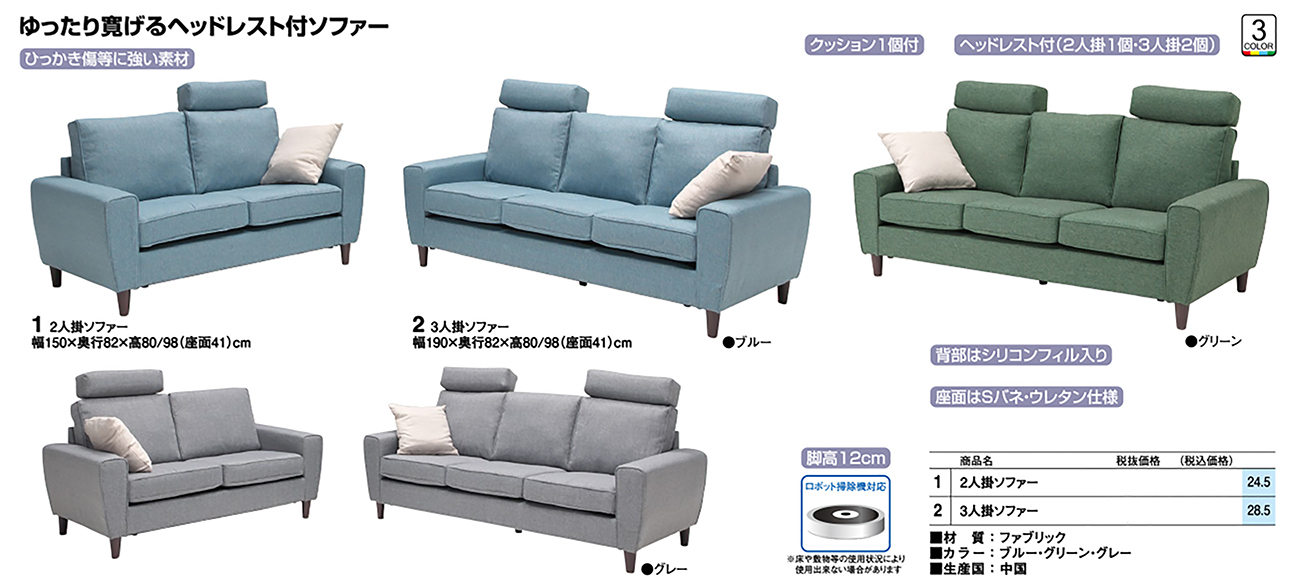 • 3人掛ソファー 税抜61, 360円 (税込67, 496円)