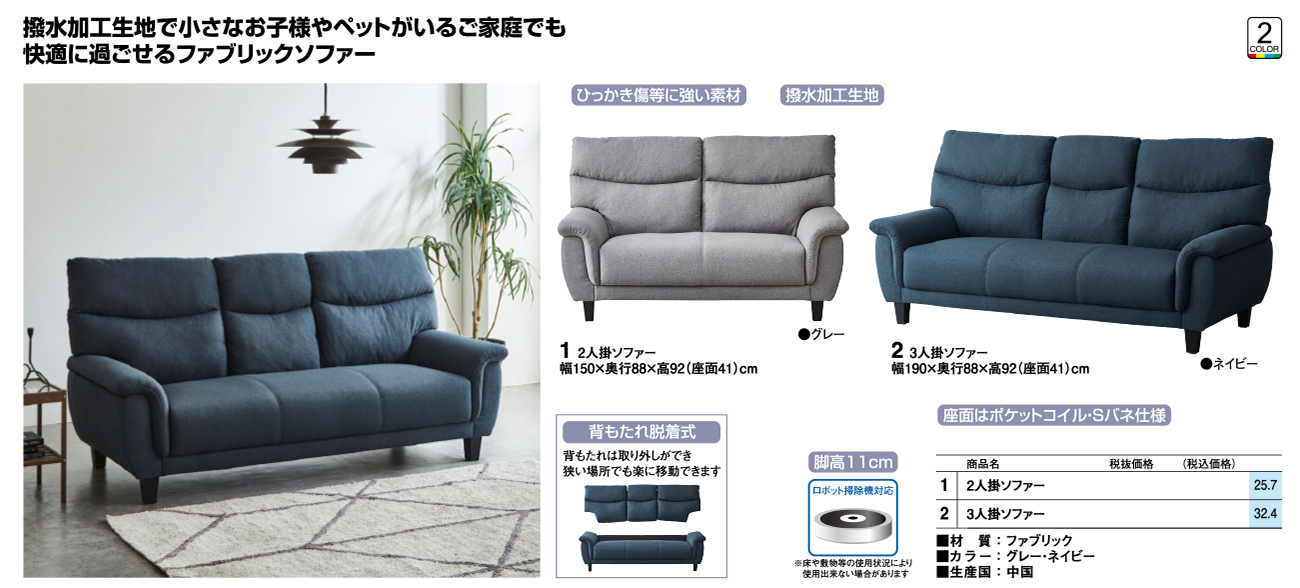 - 3人掛ソファー 税抜86, 800円 (税込95, 480円)