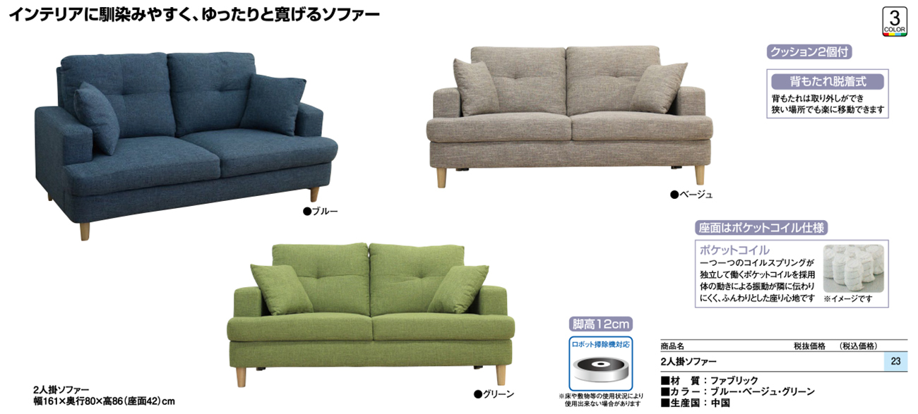 - 2人掛ソファー 税抜50, 720円 (税込55, 792円)