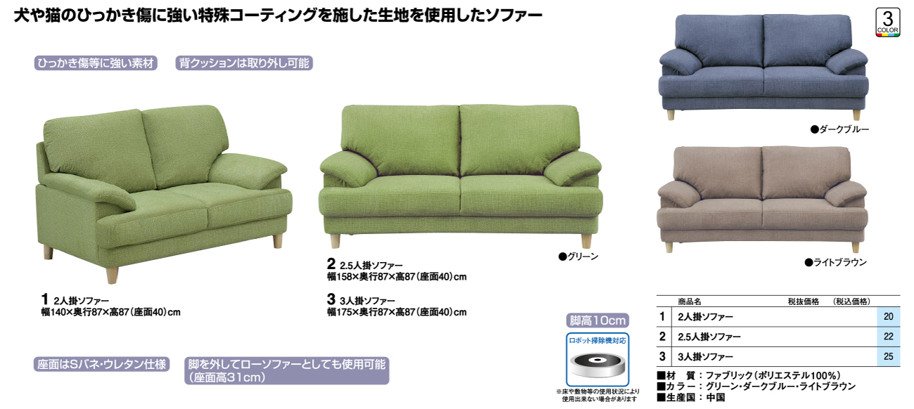 - 3人掛ソファー 税抜65, 360円 (税込71, 896円)
