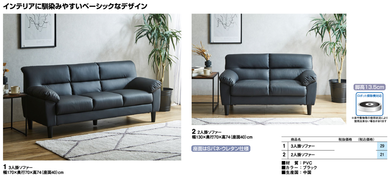 - 2人掛ソファー 税抜37, 360円 (税込41, 096円)