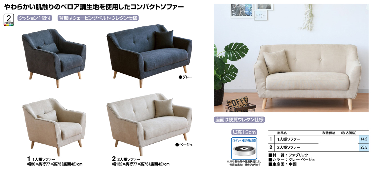 - 1人掛ソファー 税抜29, 600円 (税込32, 560円)