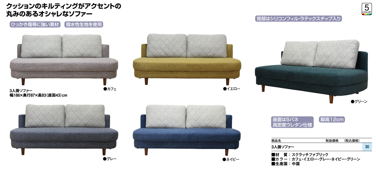 - 3人掛ソファー 税抜72, 000円 (税込79, 200円)