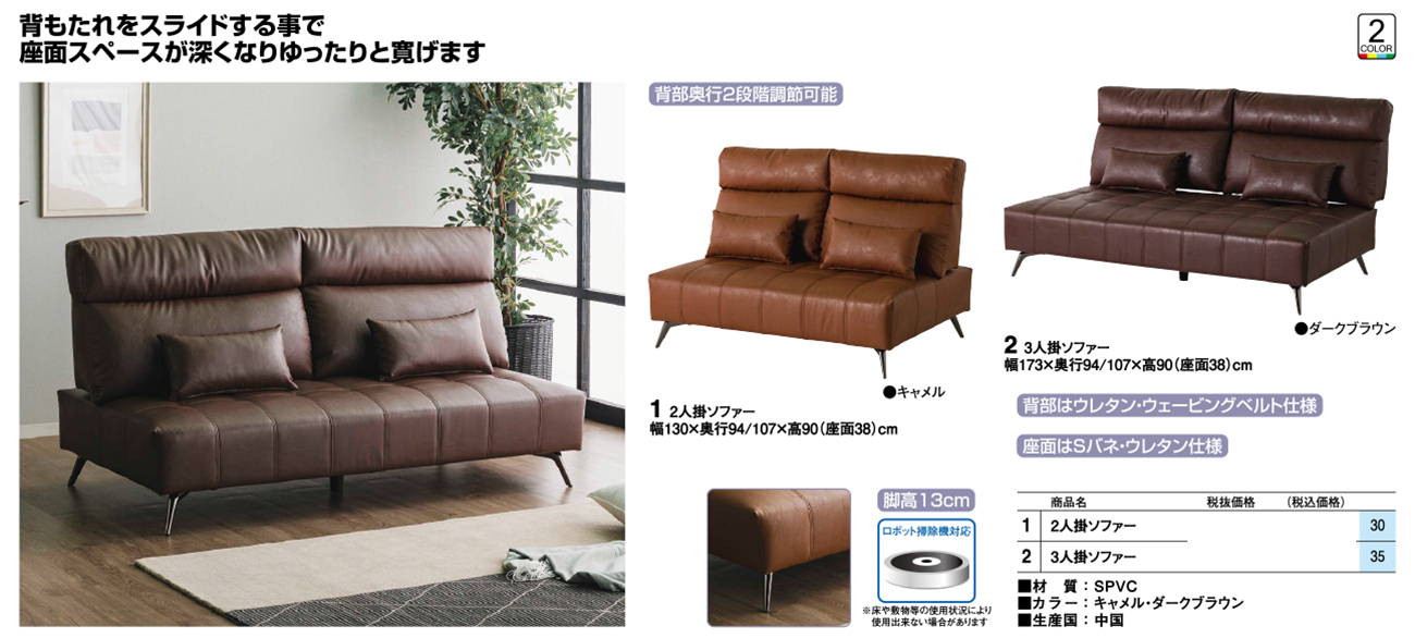 - 2人掛ソファー 税抜101, 360円 (税込111, 496円)